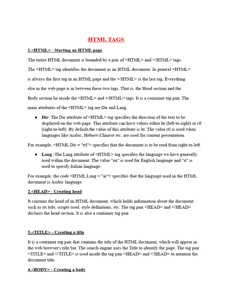 Html Tags Download Pdf at Vicky Jorgenson blog