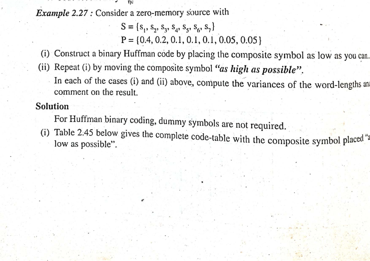 Huffman Coding Example 2.27: Variance Calculation and Analysis - Studocu