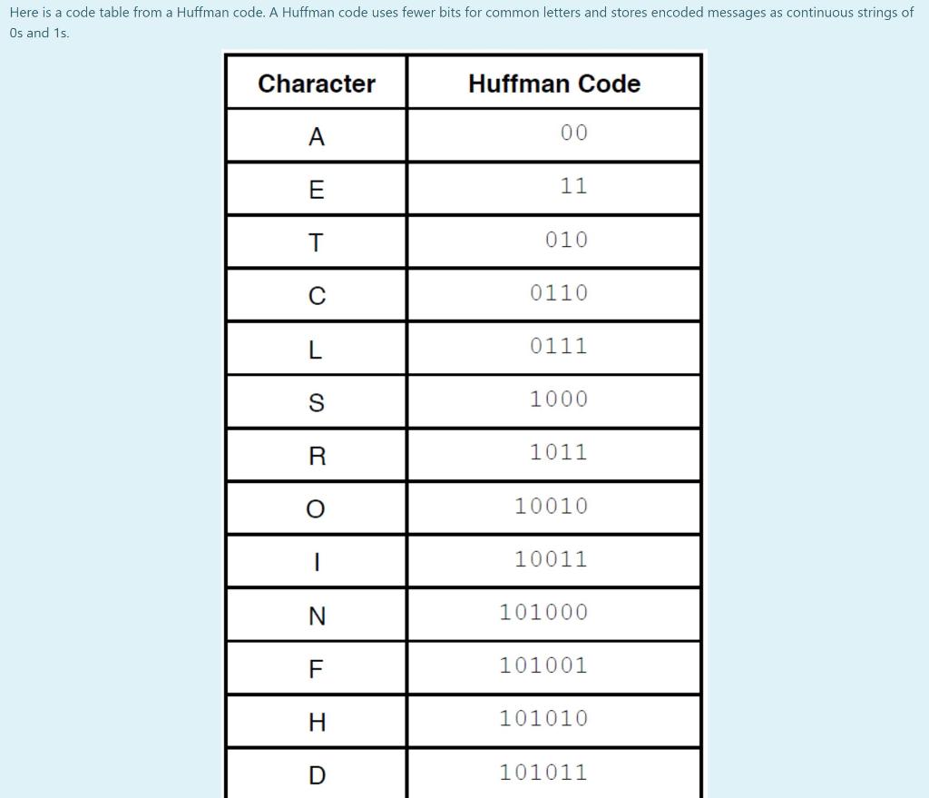 Solved Use the Huffman table below the decode the following | Chegg.com
