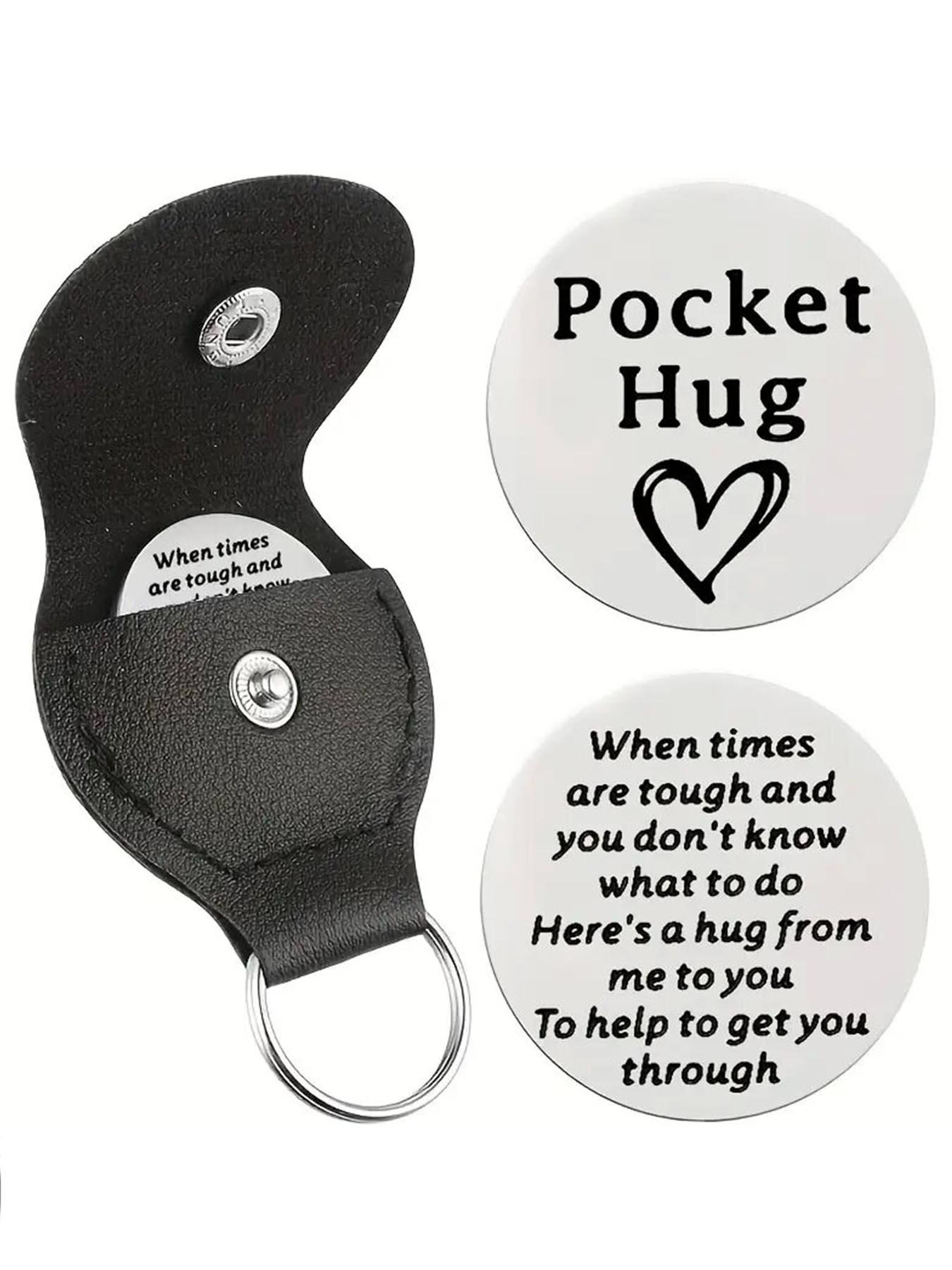 1 pc Pocket Hug Emotional Support Keychain, Metal Round Keyring with ...