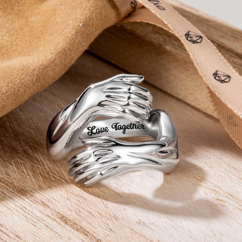 Personalised Sterling Silver Two Hands Warm Hug Ring
