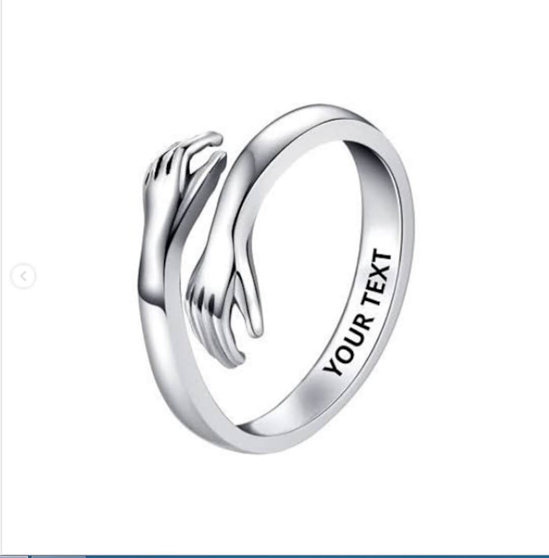 925 Sterling Silver Ring, Personalized Love Hug Ring, Engraving Hand ...