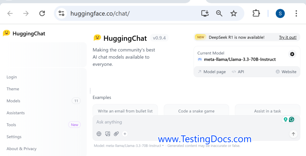 HuggingChat Introduction - TestingDocs