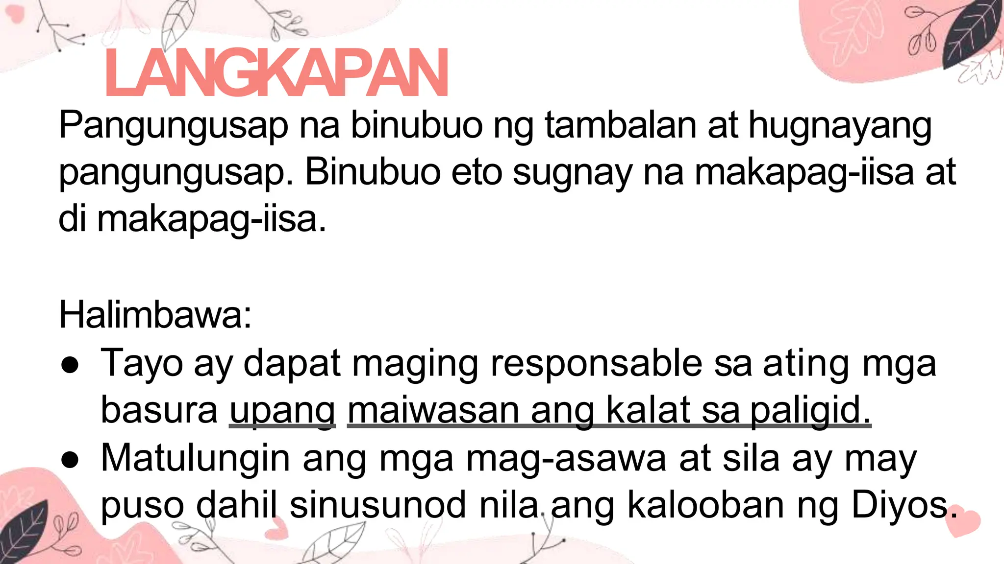 Pangugnusap Na Payak, Tambalan Hugnayan at Langkapan | PDF