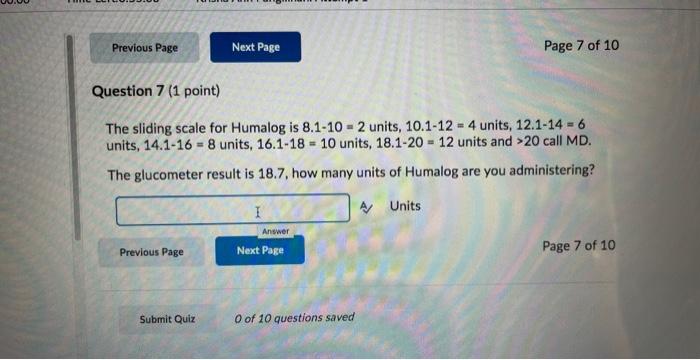Solved The sliding scale for Humalog is 8.1−10=2 units, | Chegg.com