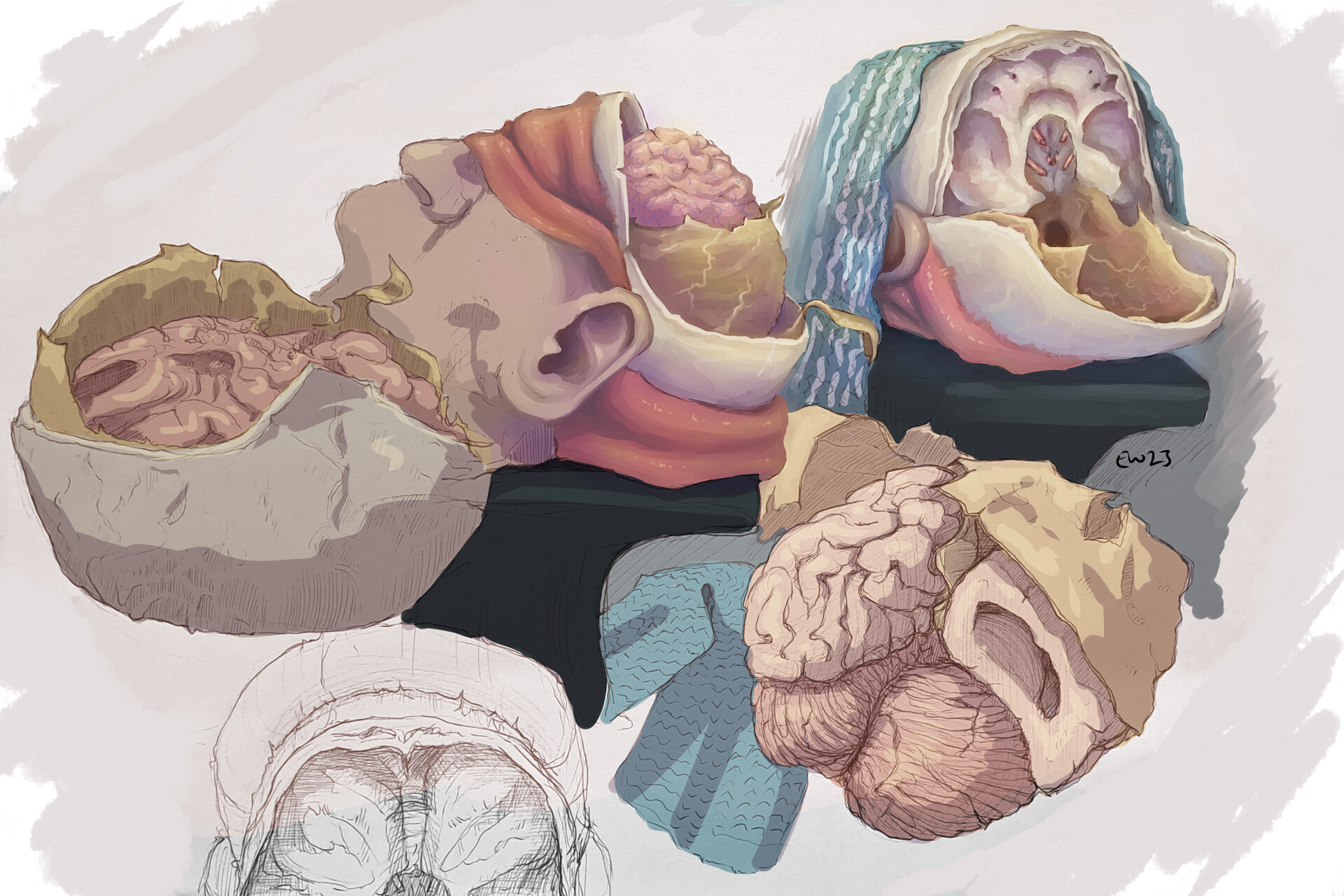 Human Anatomy Scientific Illustrations Skin Cuts For Dissection High ...