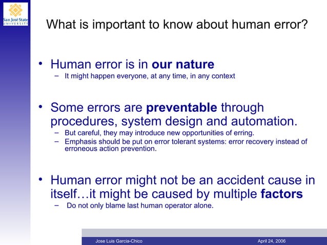 PPT - Human Error PowerPoint Presentation, free download - ID:338930