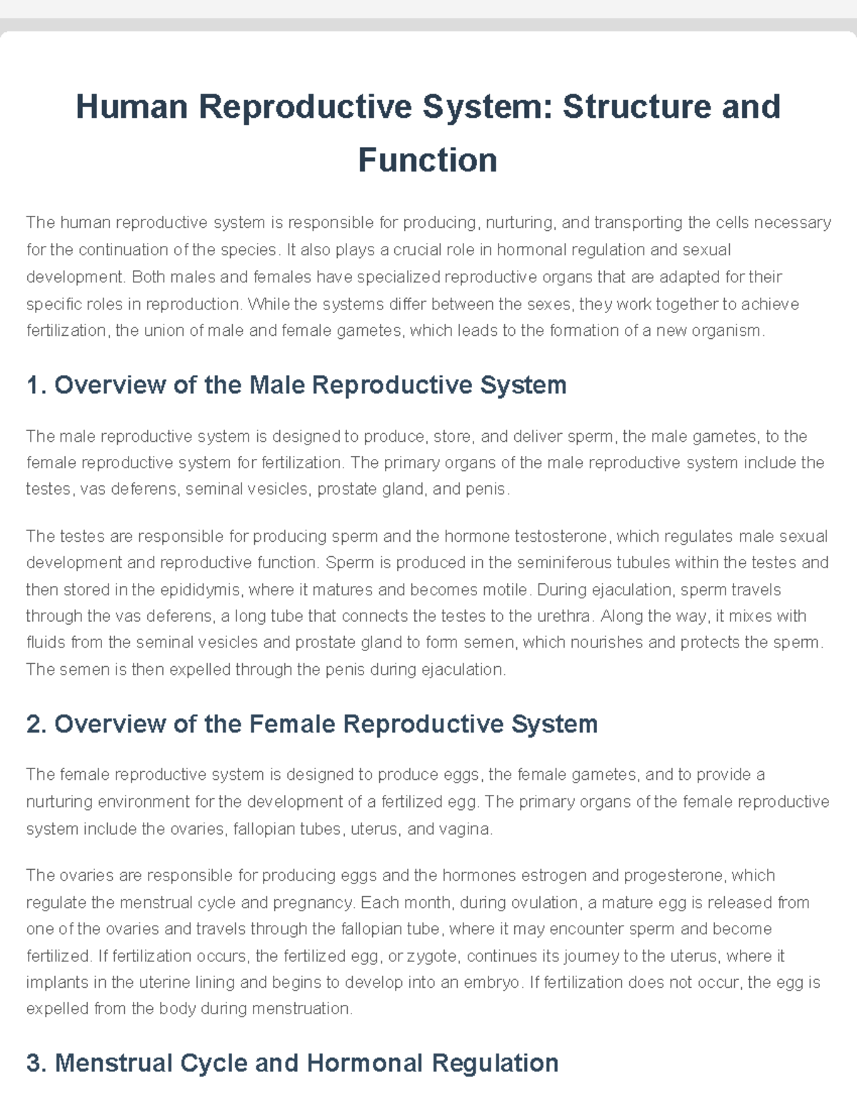 Human Reproduction - Male and Female Systems, Fertilization, and Pregnancy