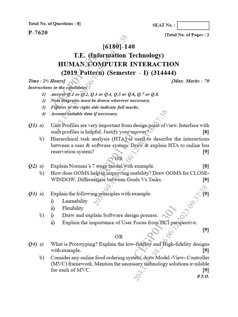 Human-Computer Interaction Exam | PDF | Usability | Human Communication