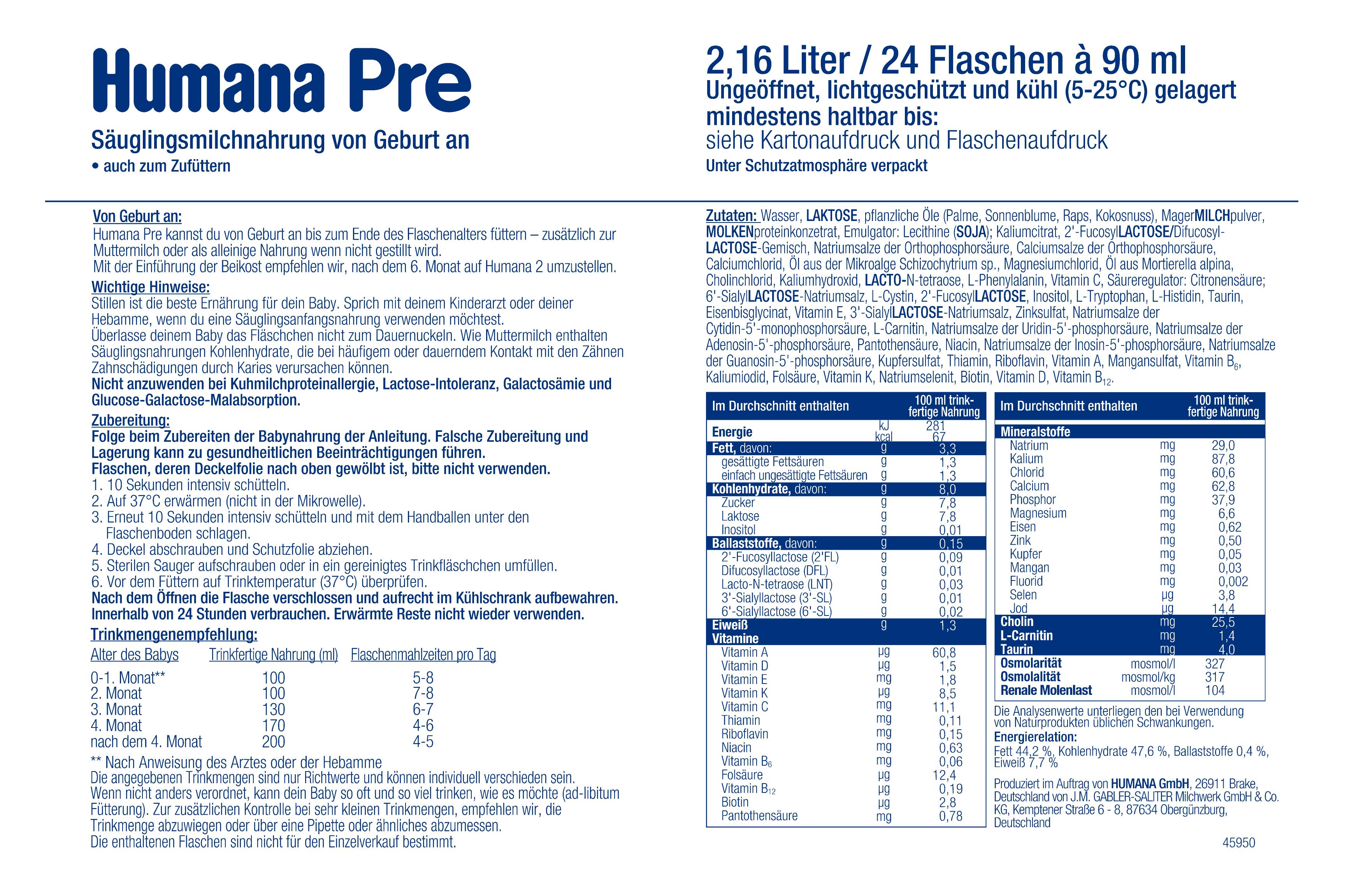 Humana Anfangsmilch PRE: Trinkfertige Babynahrung