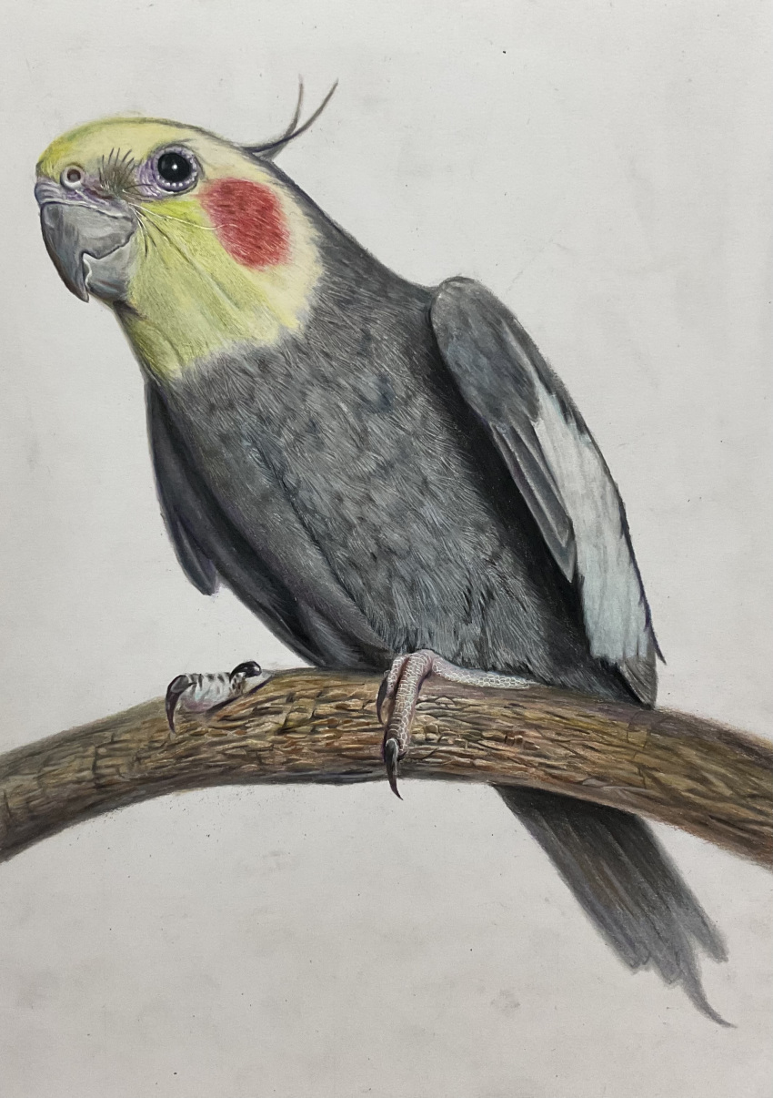 absurdres animal animal_focus bird branch colored_pencil_(medium ...