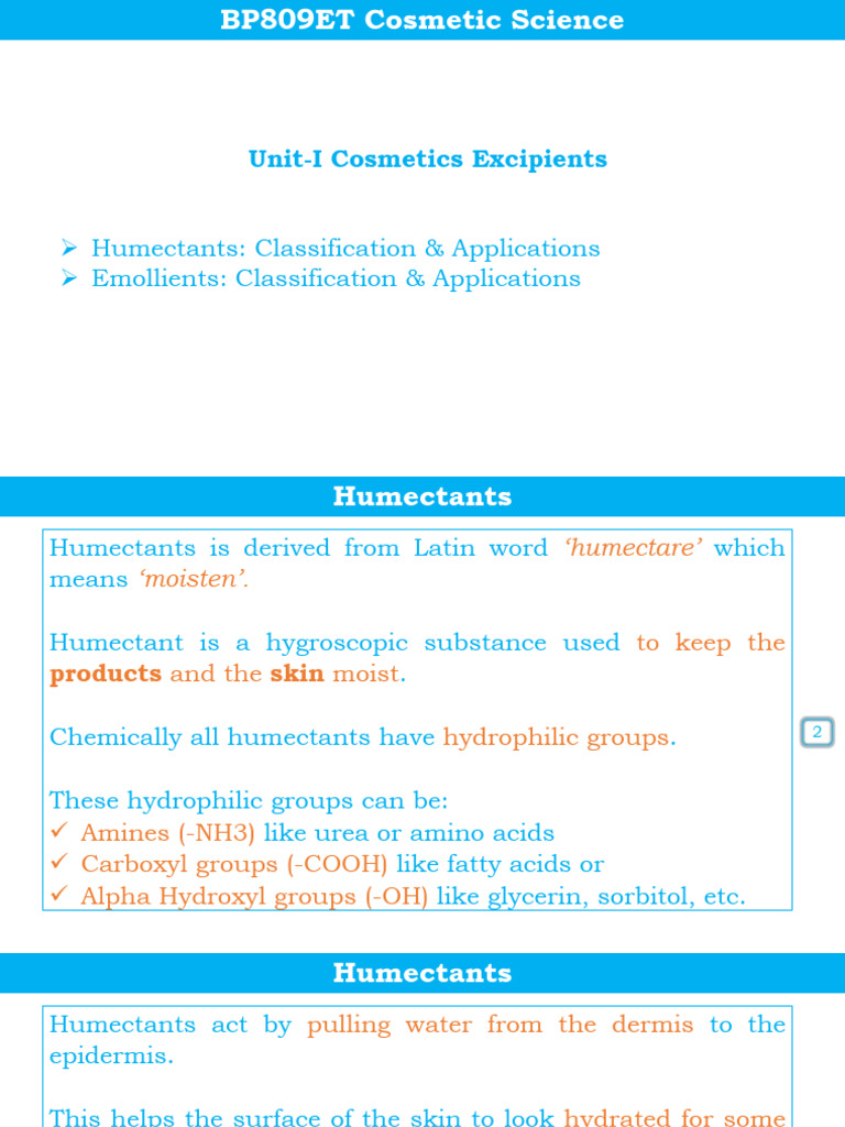 Humectants and Emollients in Cosmetics | PDF