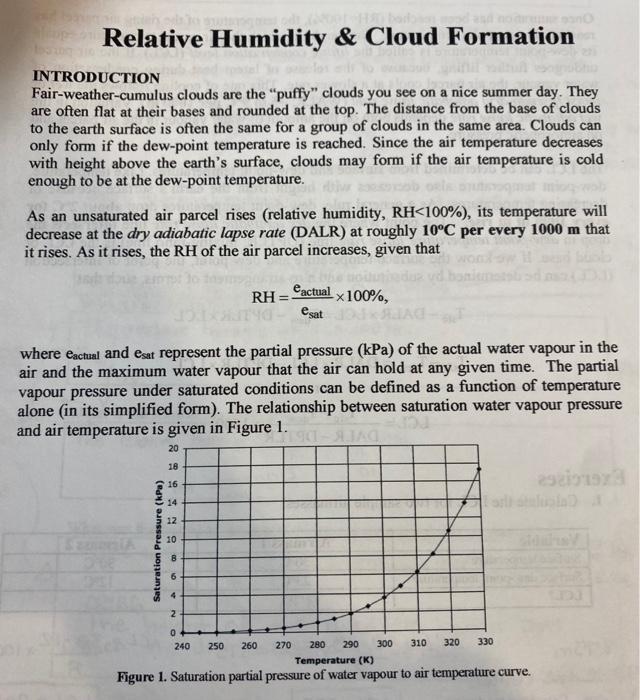 Solved Relative Humidity \& Cloud Formation INTRODUCTION | Chegg.com