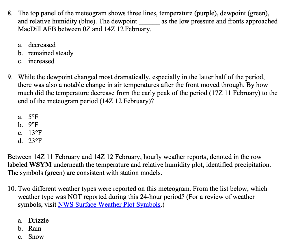 Solved 8. The top panel of the meteogram shows three lines, | Chegg.com