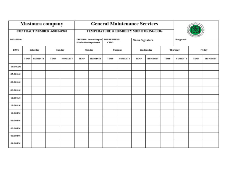 Temperature and Humidity Log Form | PDF