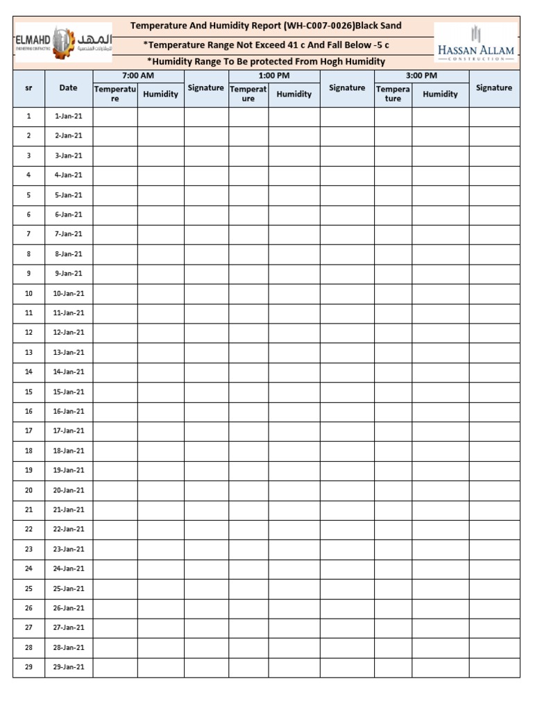 Temperature And Humidity Log Sheet Template at Tina Kemp blog