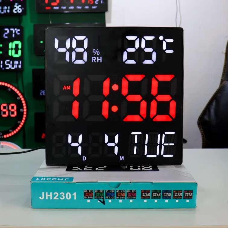 Digital Wall Clock LED Temperature Humidity Sensor... – Vicedeal