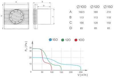 Modern Bathroom Extractor Fan 100mm with Timer and Humidity Sensor