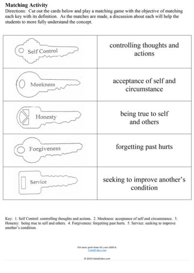 5 Keys of Humility Matching Worksheet - The Critical Years
