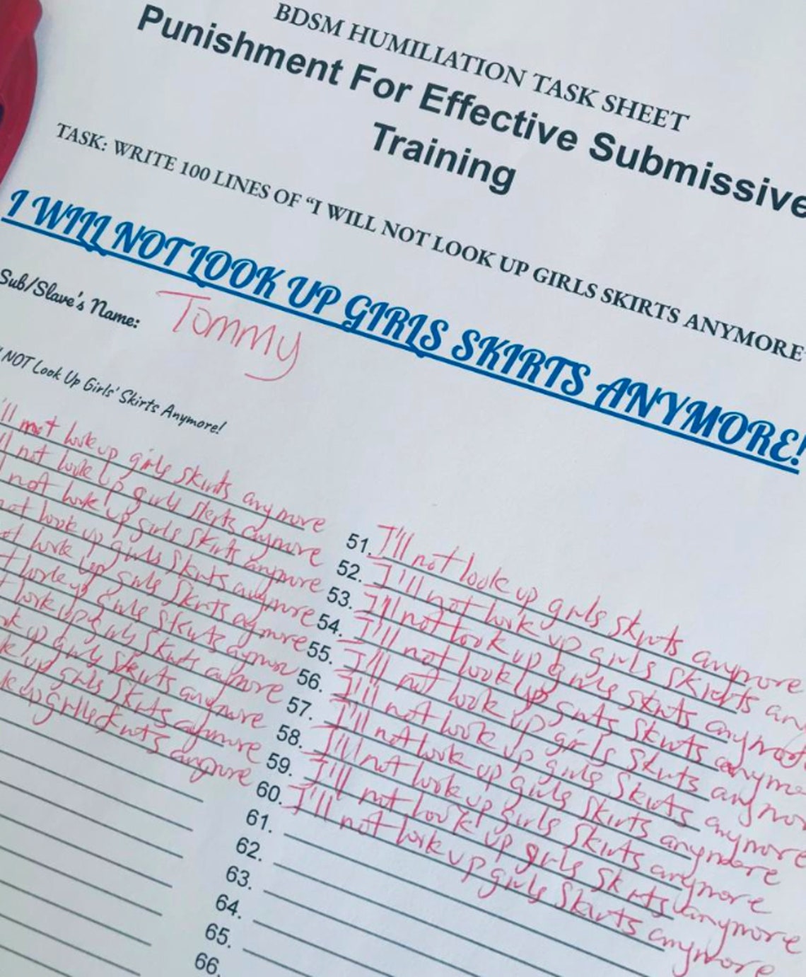 BDSM Humiliation Punishment Task Sheet Write i Won't - Etsy