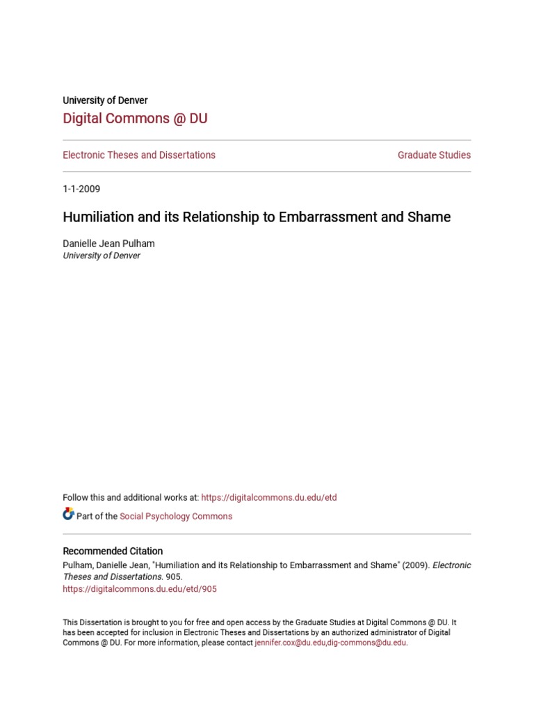 Humiliation and Its Relationship To Embarrassment and Shame PDF | PDF ...