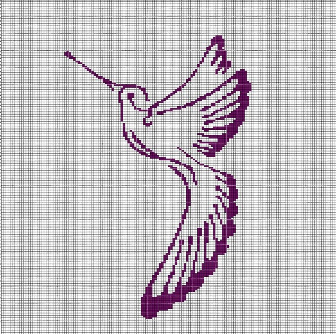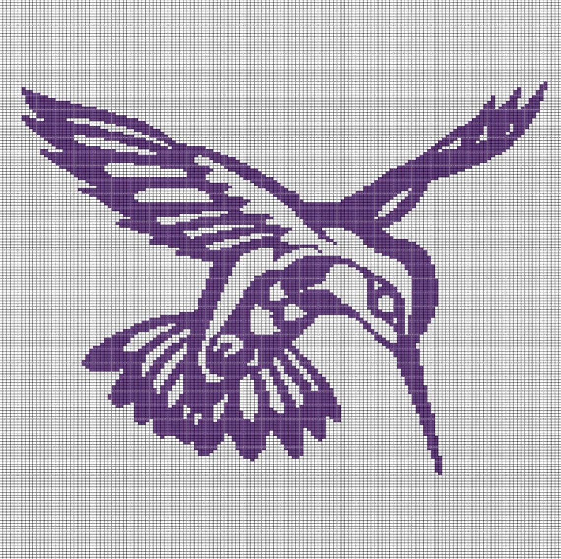 Purple Hummingbird crochet afghan pattern graph | Cross stitch patterns ...