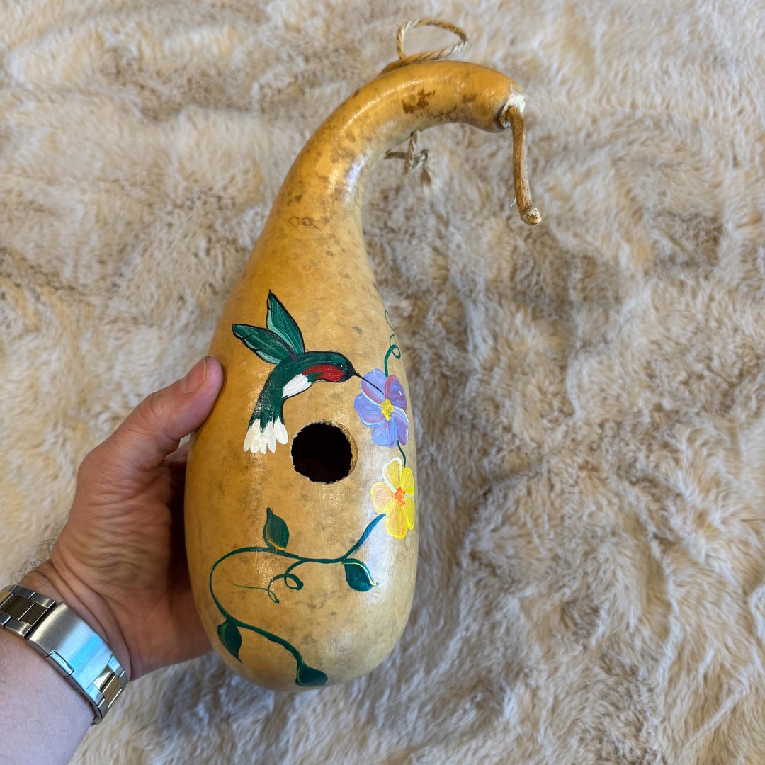 Vintage Large Hummingbird Pyrography Gourd. Mexican Painted *great Gift ...