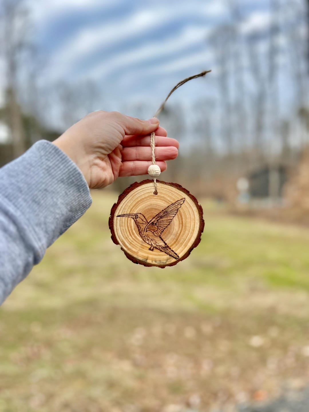 Hummingbird Pyrography Wood Slice Ornament: Car Charm Decor - Etsy