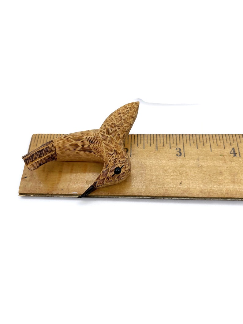 Vtg Artisan CARVED WOOD HUMMINGBIRD Pyrography Bird Brooch Ornithology ...