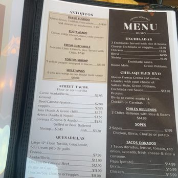 Menu at HUMO COCINA MEXICANA restaurant, Tucson