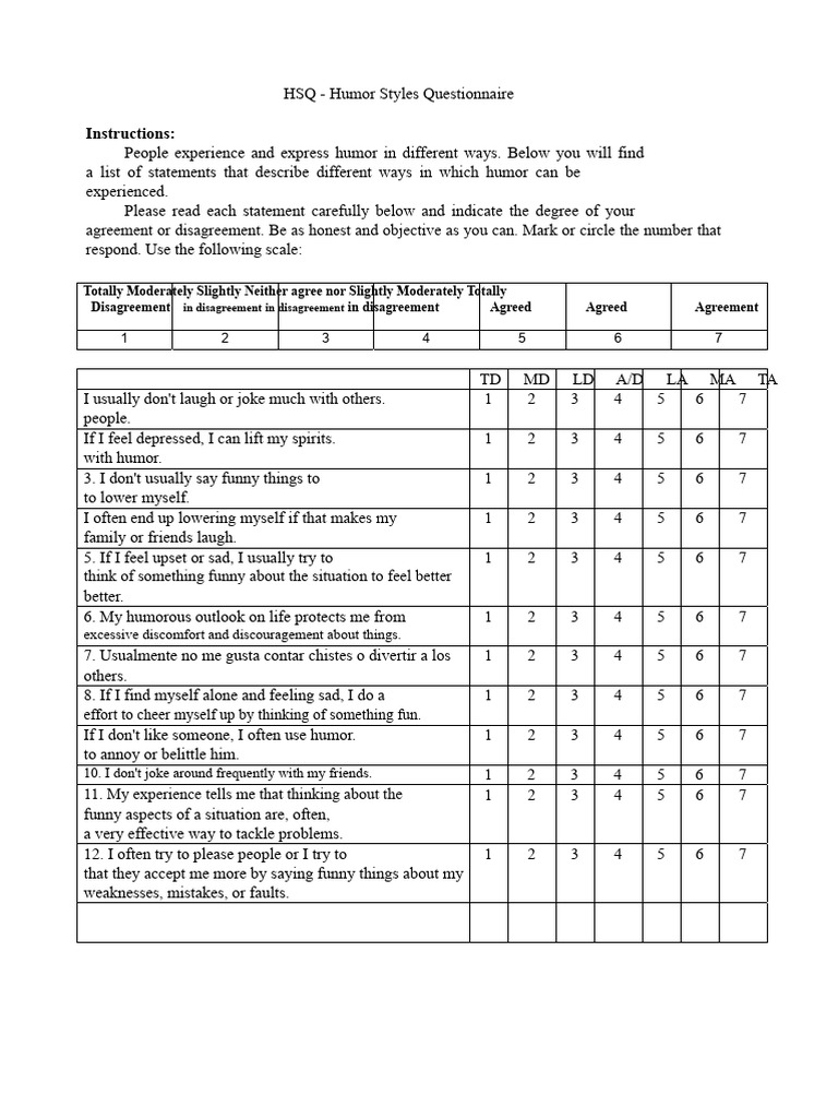 Humor Styles Questionnaire | PDF | Jokes | Psychology