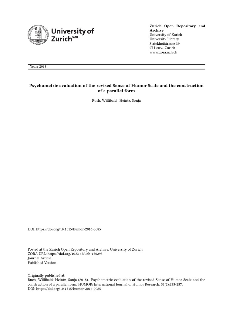 Dimensionality and Reliability of the Scale of Perception of Humor ...