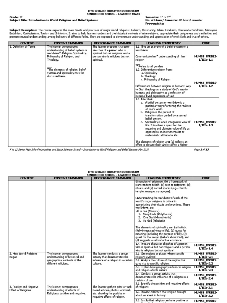 HUMSS - Introduction To World Religions & Belief Systems CG | PDF ...