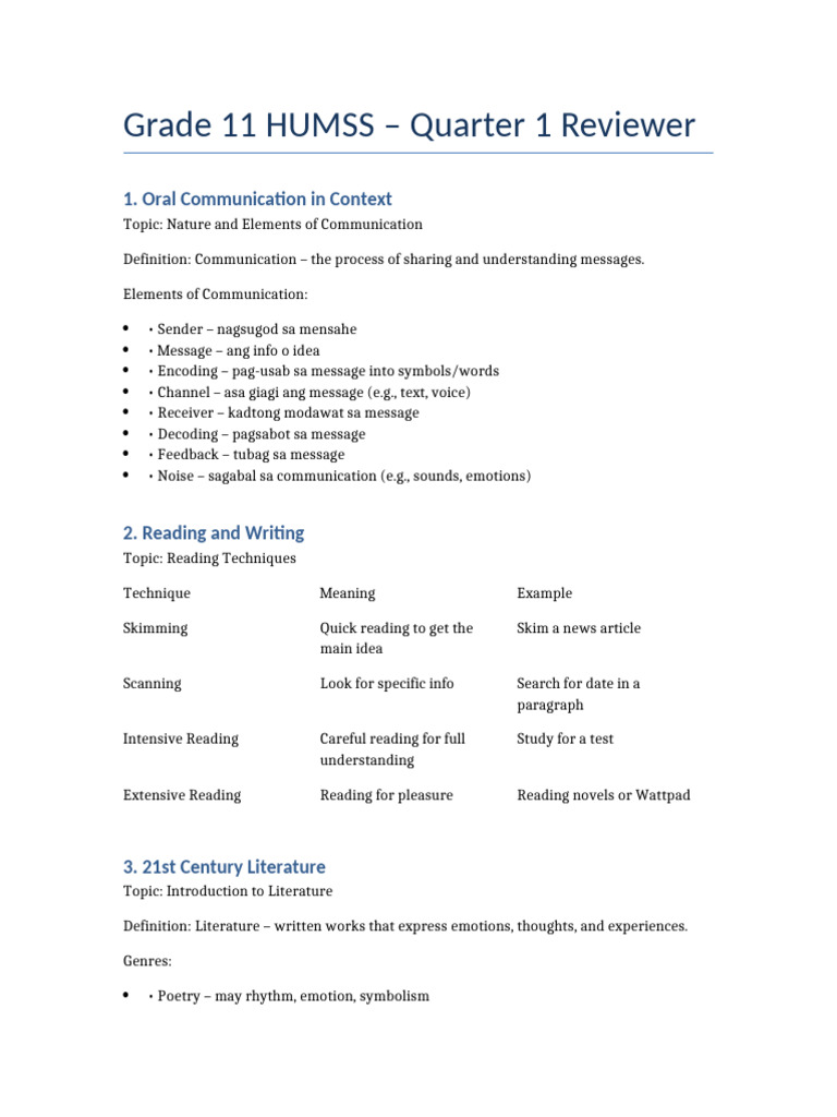 Grade 11 HUMSS Quarter 1 Study Guide | PDF | Communication | Human ...