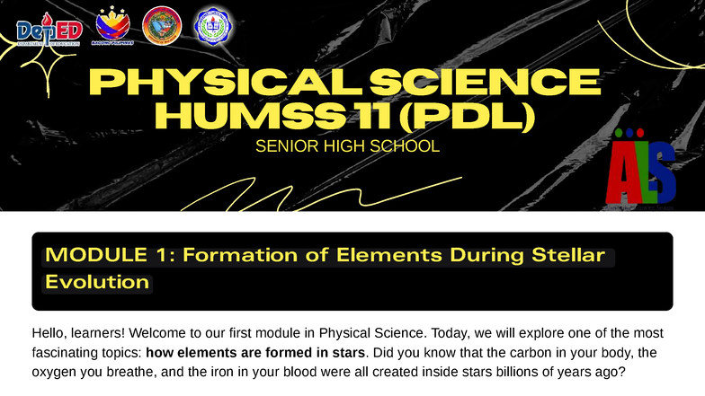 PHYSICAL SCIENCE HUMSS 11 (PDL) MODULE 1: Stellar Element Formation ...