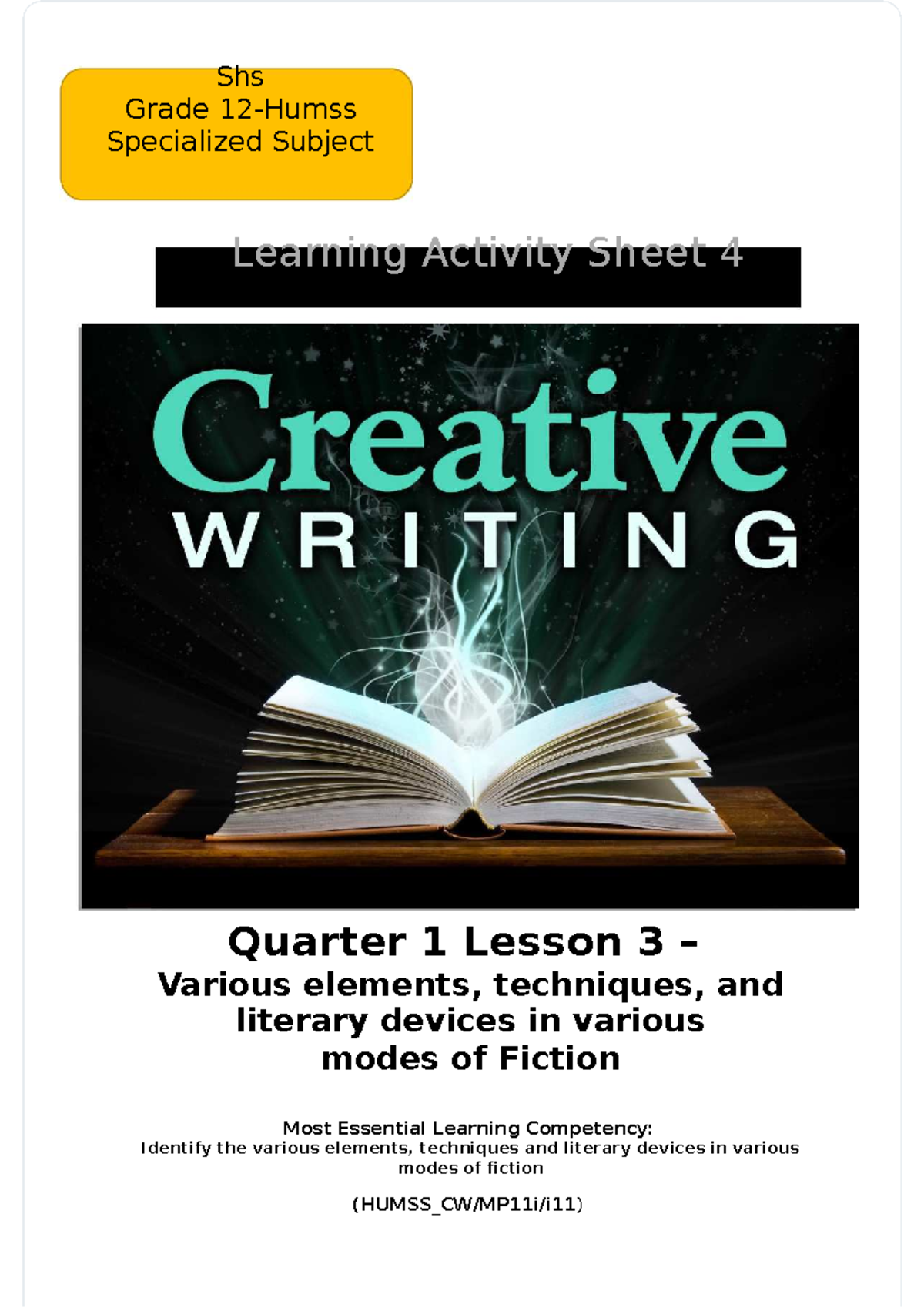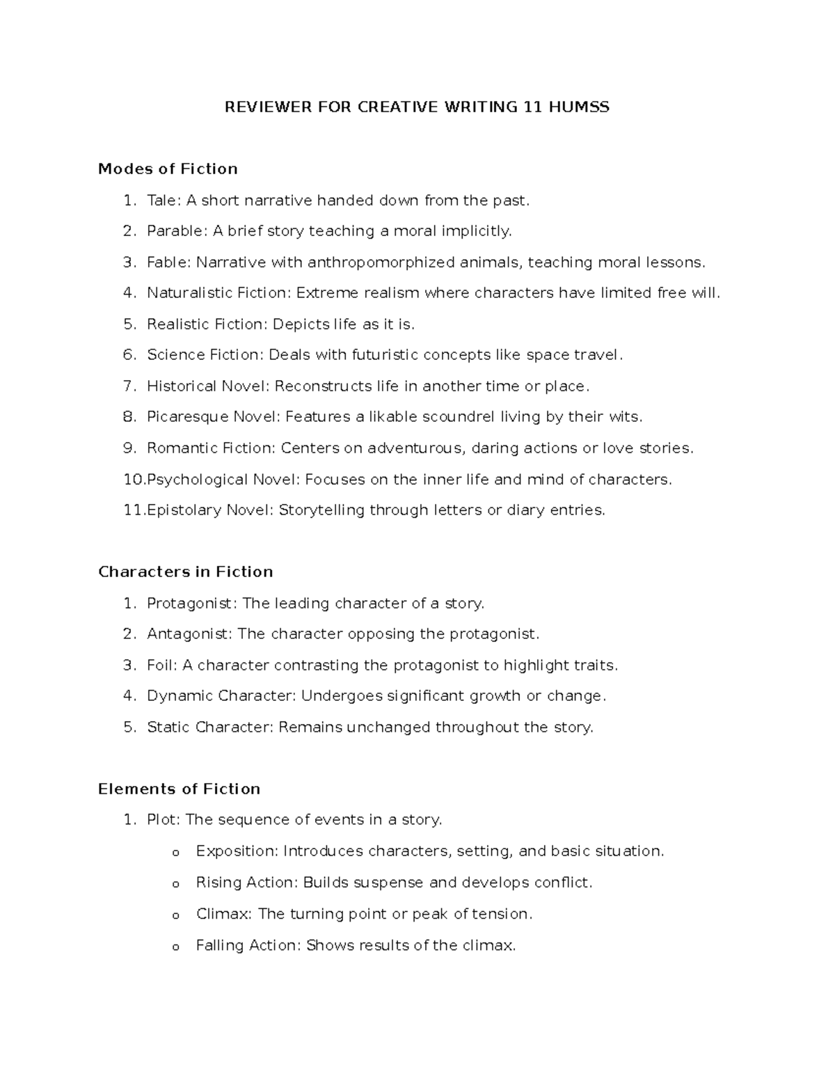 Creative Writing 11 HUMSS: Modes, Characters, and Elements of Fiction ...