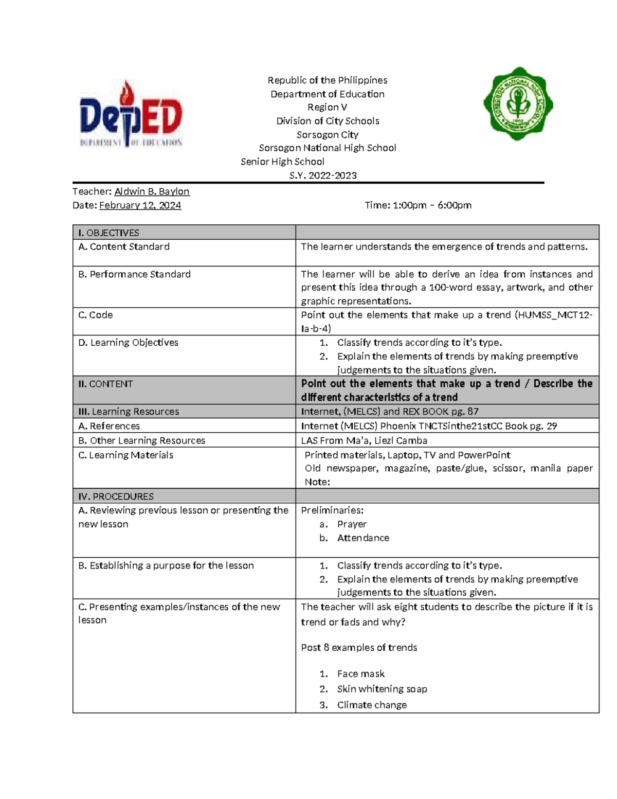 Lesson Plan in HUMSS | PDF | Lesson Plan
