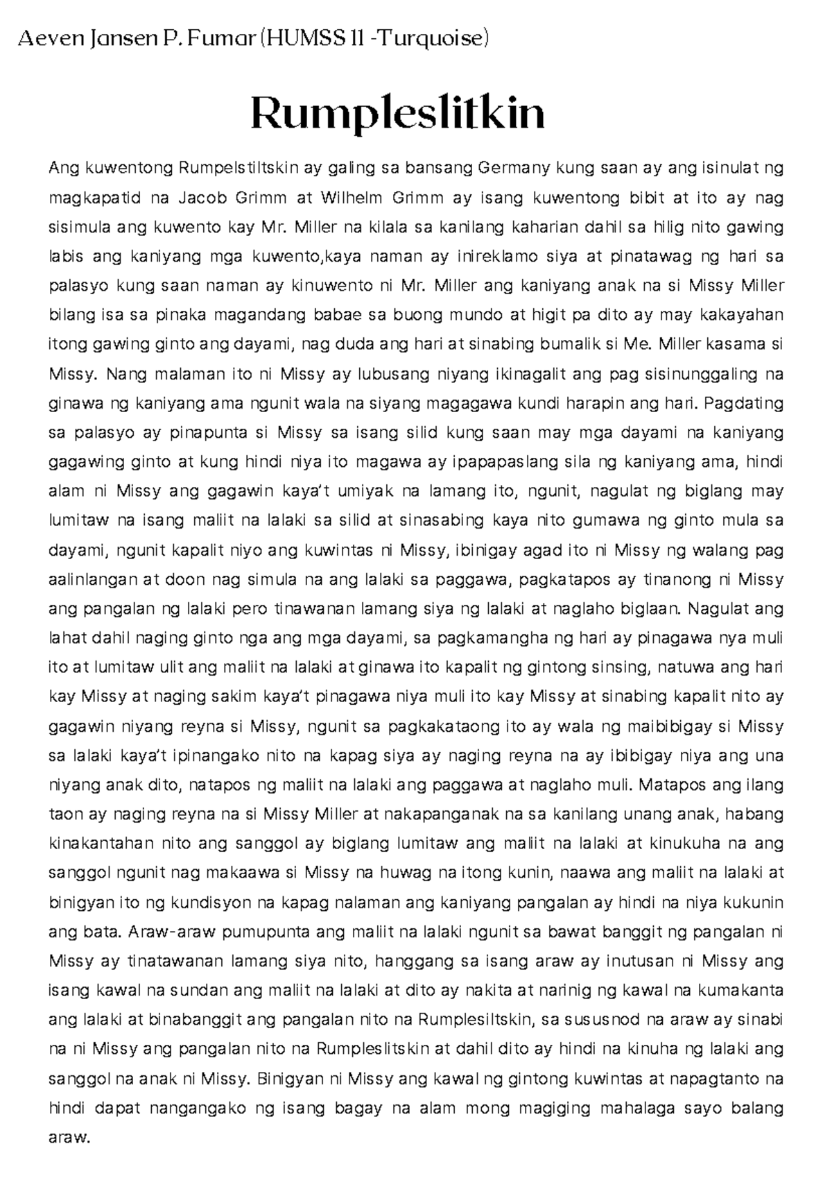 HUMSS 11 - Turquoise: Infographic Example on Rumpelstiltskin Story ...