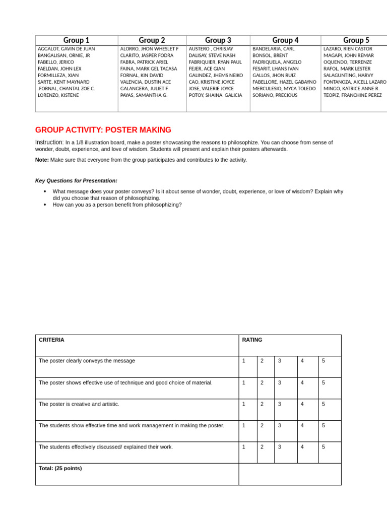 Humss 2 Poster Making Activity | PDF