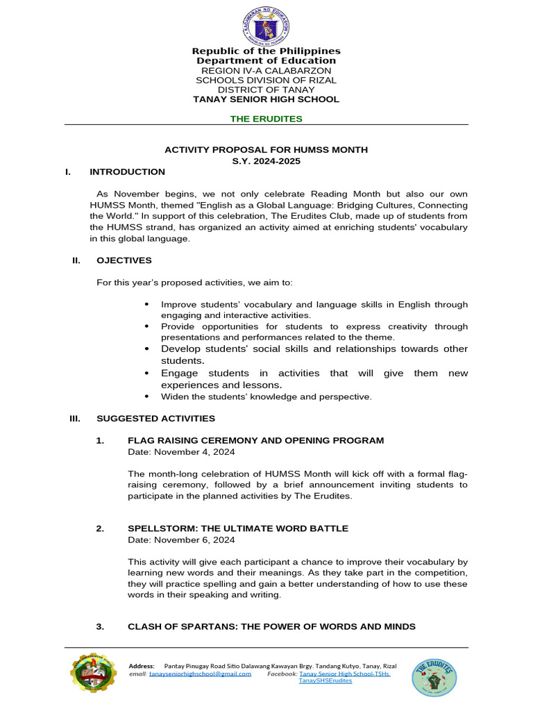 HUMSS Month Activity Proposal | PDF | Creativity | English Language