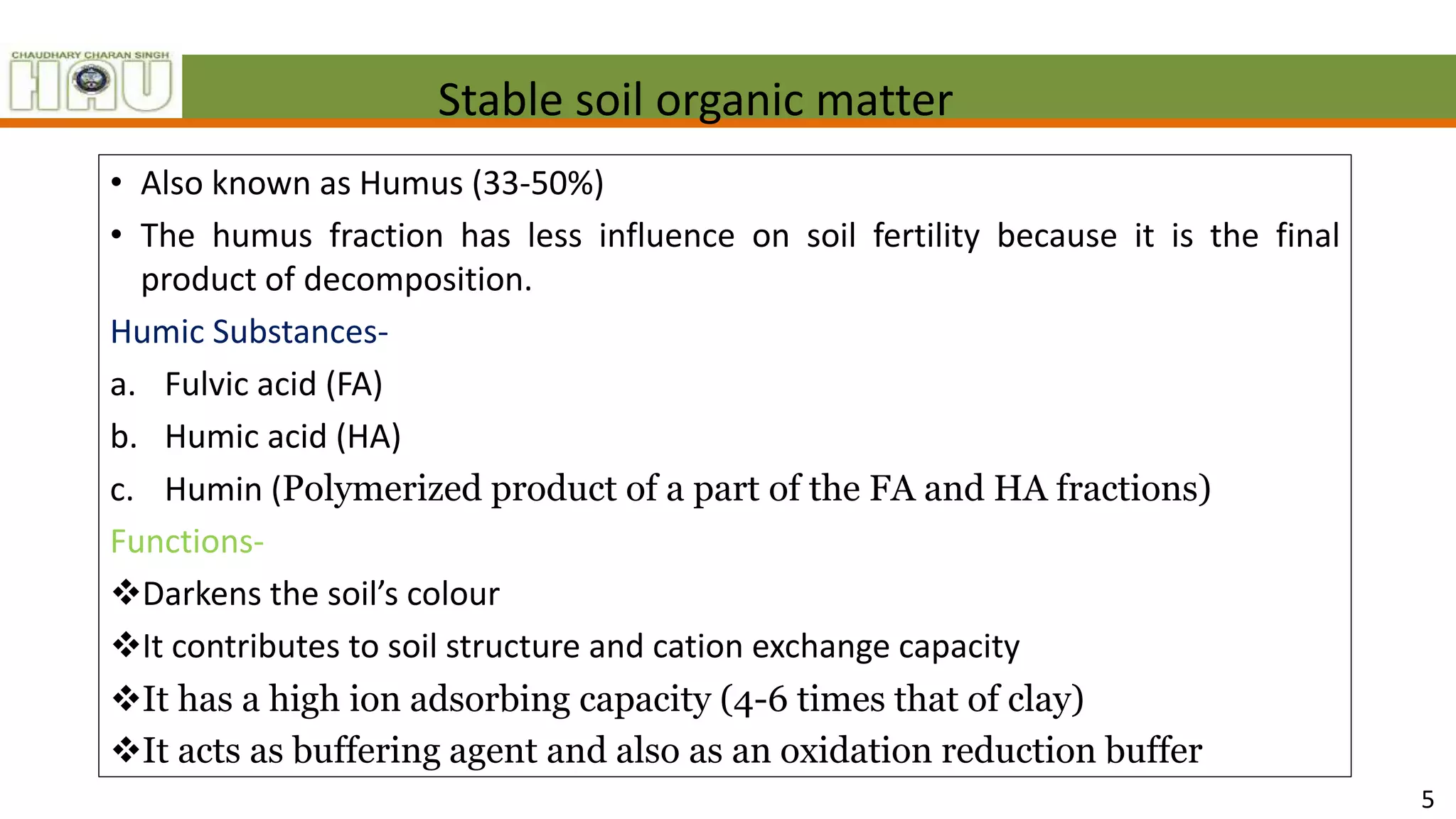 Role of organic matter in maintenance of soil fertility | PPTX