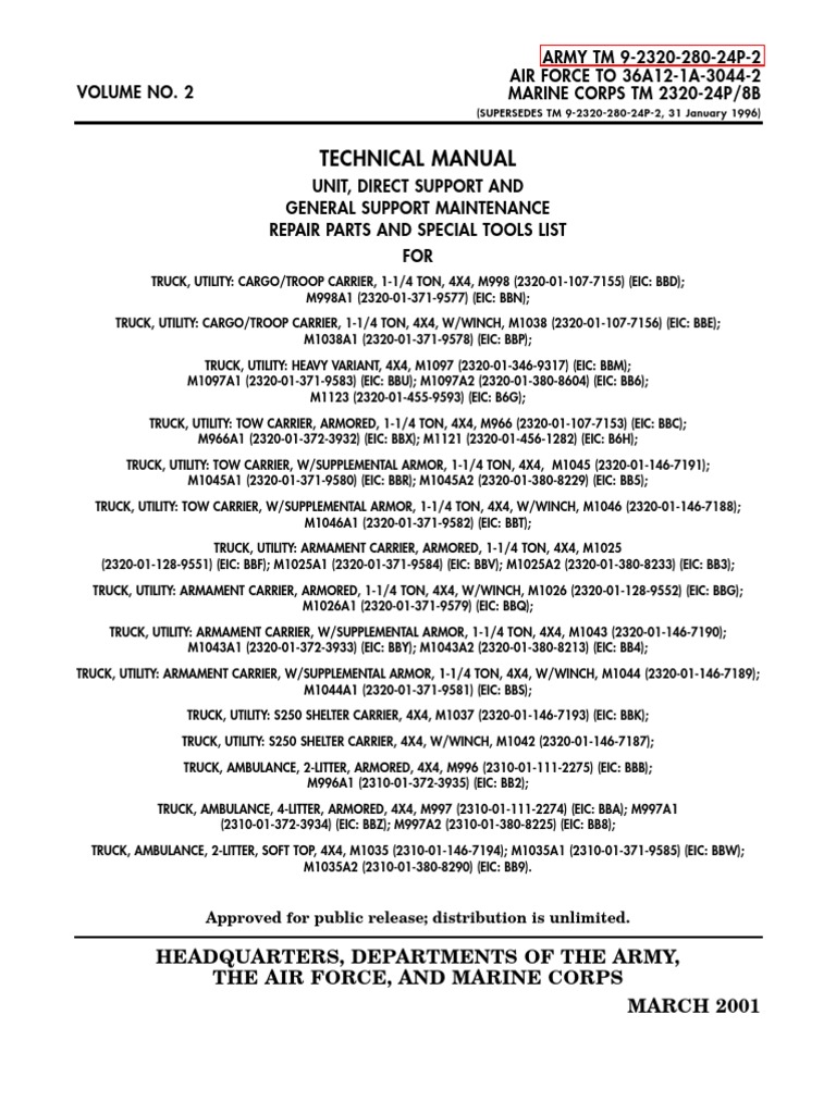 Humvee M998 Parts Manual and Tools List | PDF | Humvee | Hvac