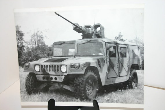 Vintage Desert Storm Army Humvee large B&W photo driver and