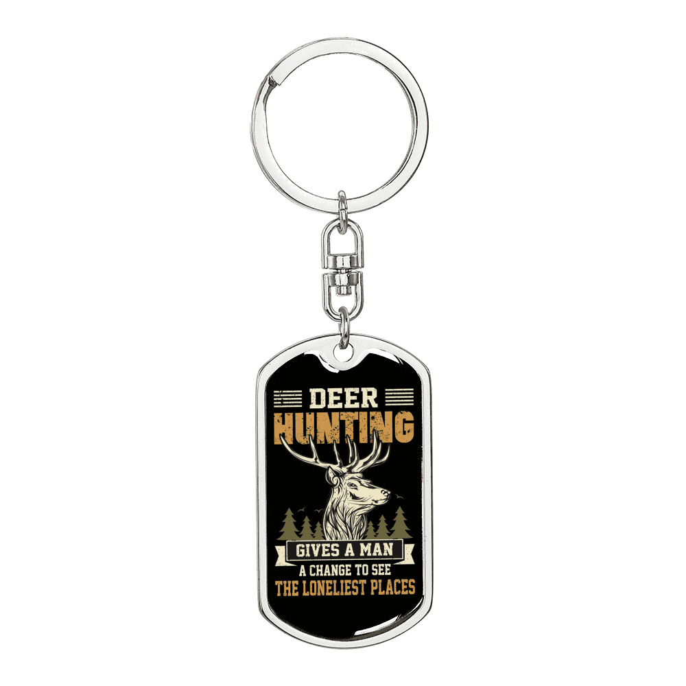 Man Deer Hunter'S Keychain Stainless Steel or 18k Gold Dog Tag Keyring ...
