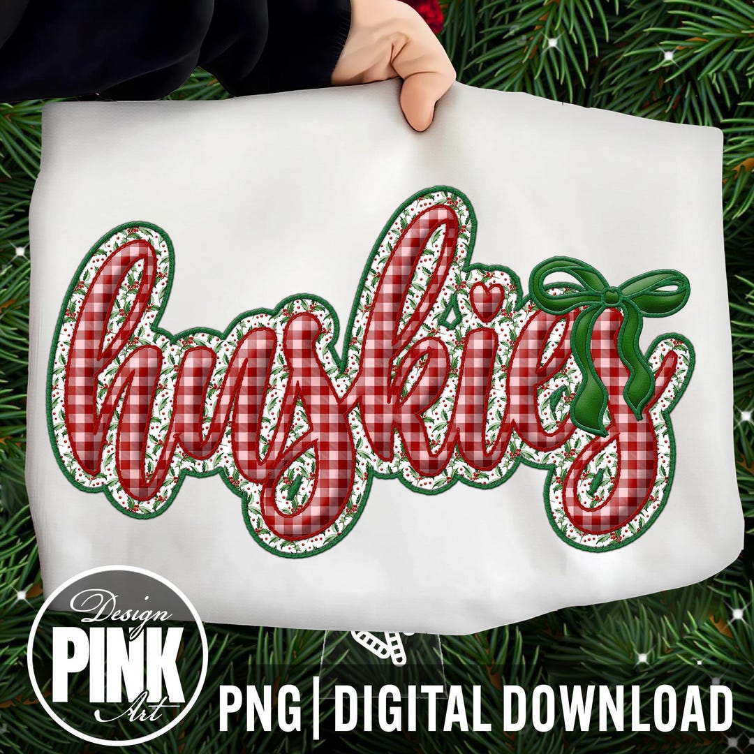 Huskies Christmas Script PNG | Red Plaid Gingham Sublimation Design ...