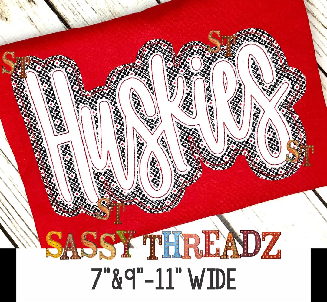 Huskies Zig Zag Double Stacked Script Applique Embroidery Download - Etsy