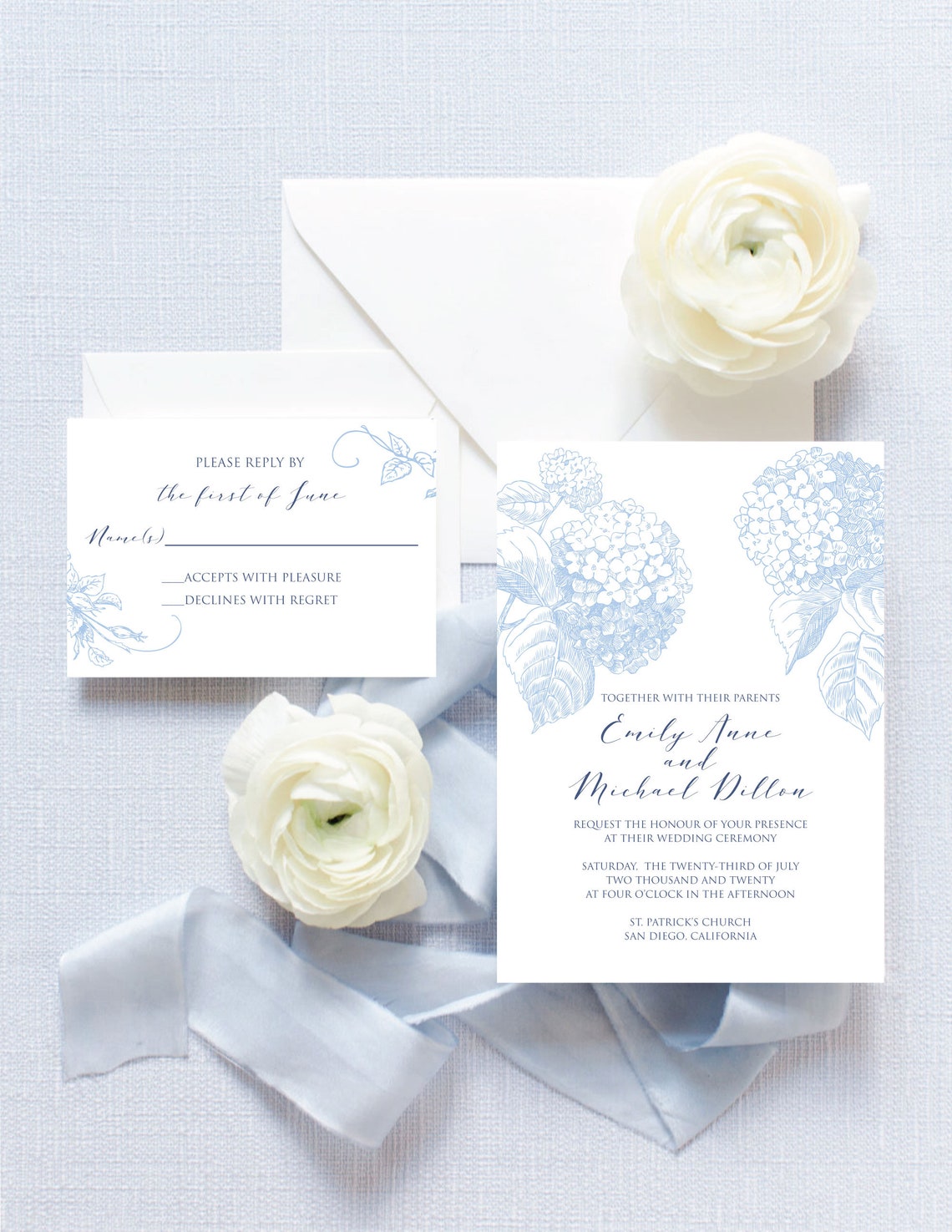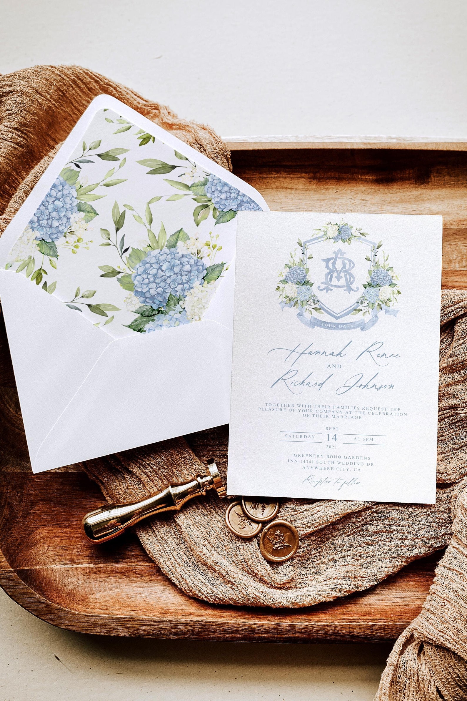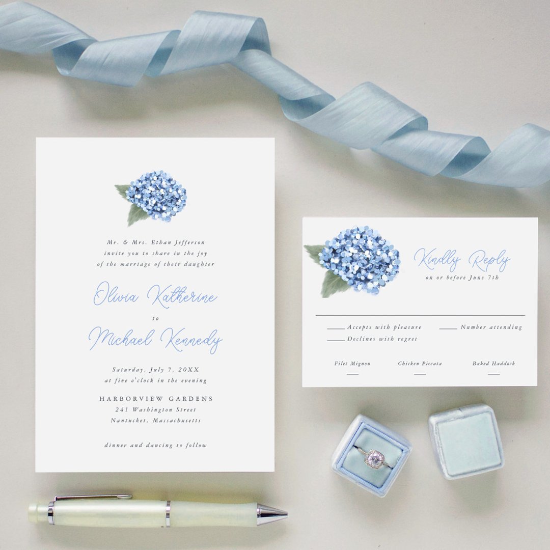 Hydrangea Wedding Invitation Suite, Floral Wedding Invites, Blue Flower ...
