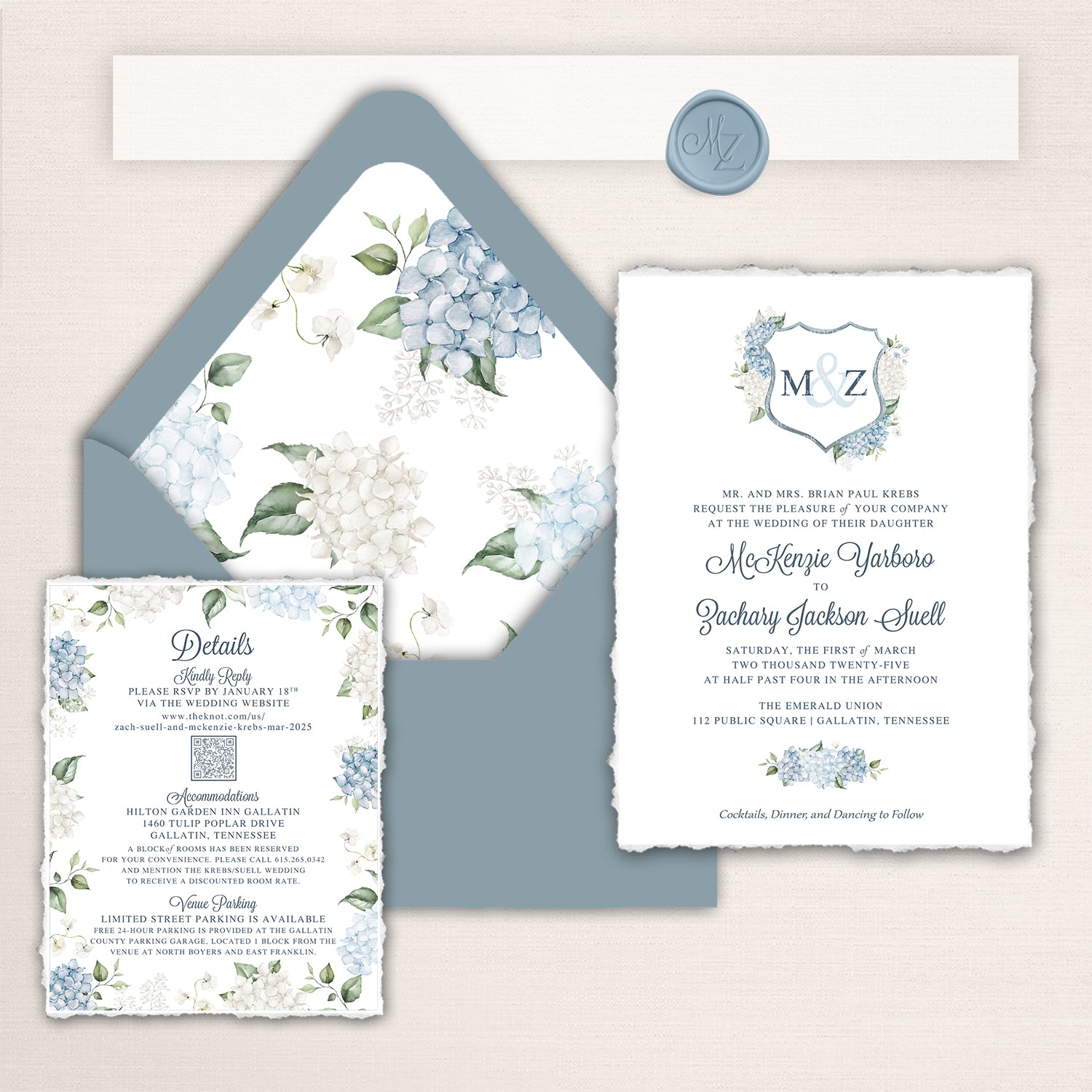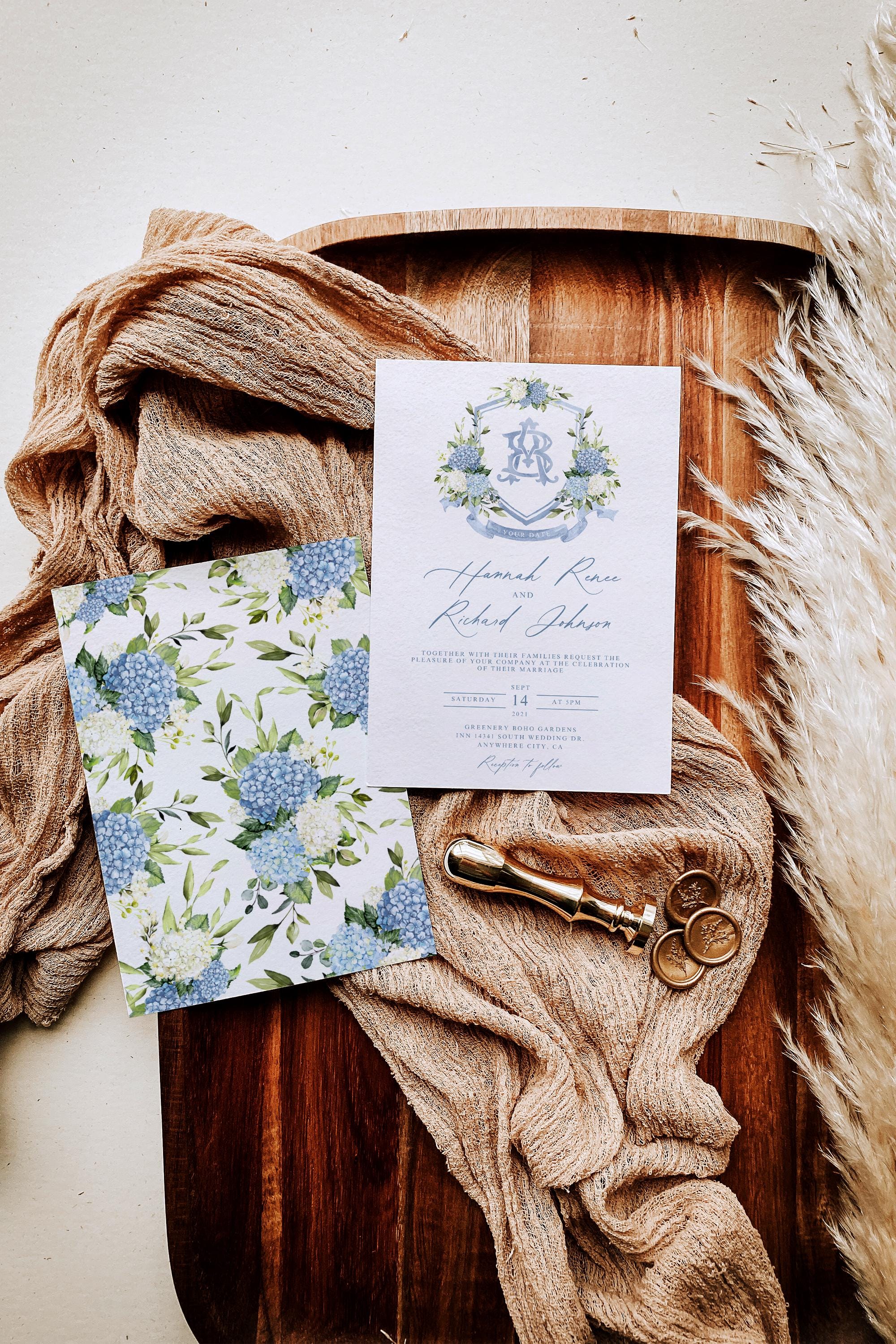Rustic blue hydrangea wedding invitation set. A beautiful and elegant ...