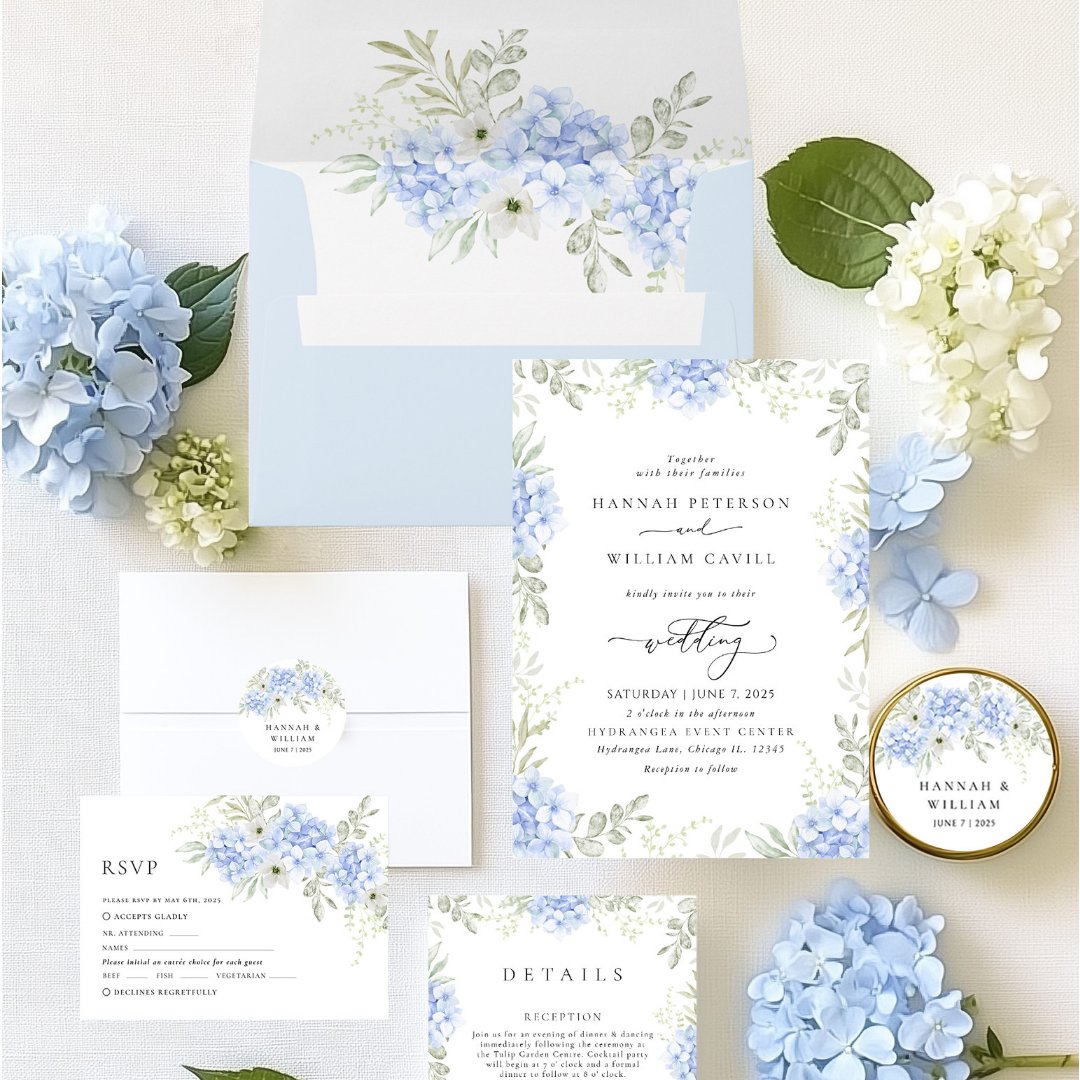 Blue Hydrangea Wedding Invitation Suite – Editable Template (digital ...