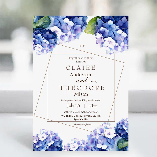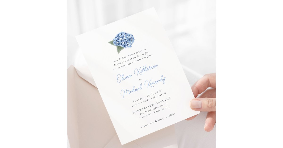 Elegant Blue Hydrangea Beautiful Floral Wedding Invitation | Zazzle